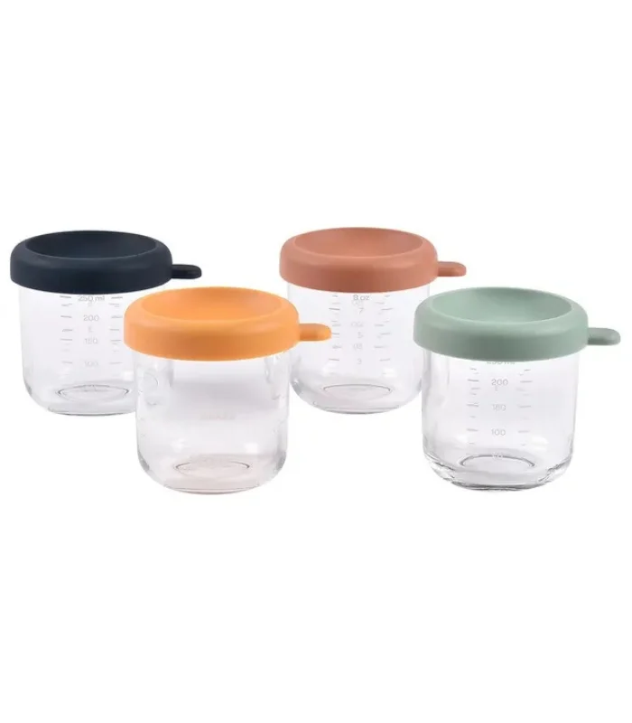 Four-piece glass storage set in Sunrise mix — perfect for batch meal prep.