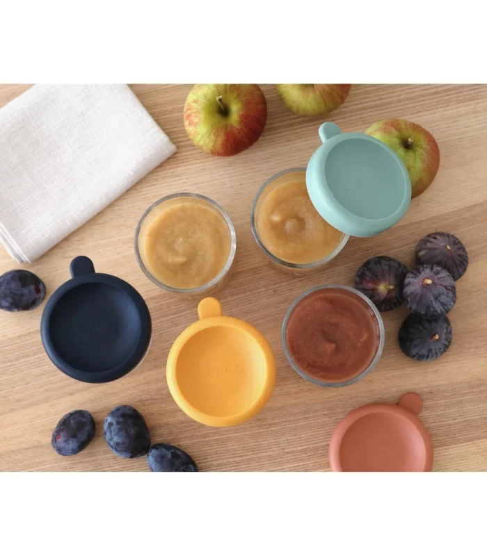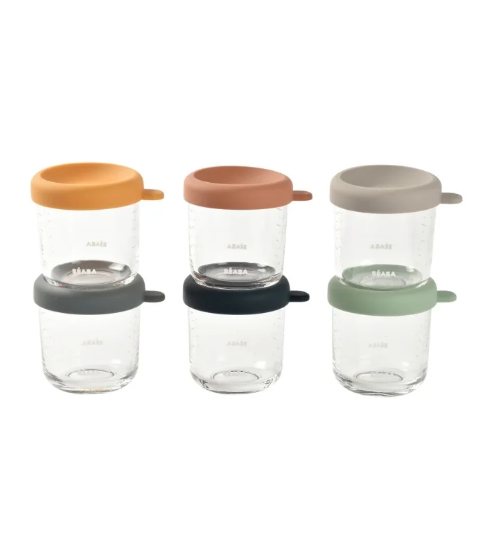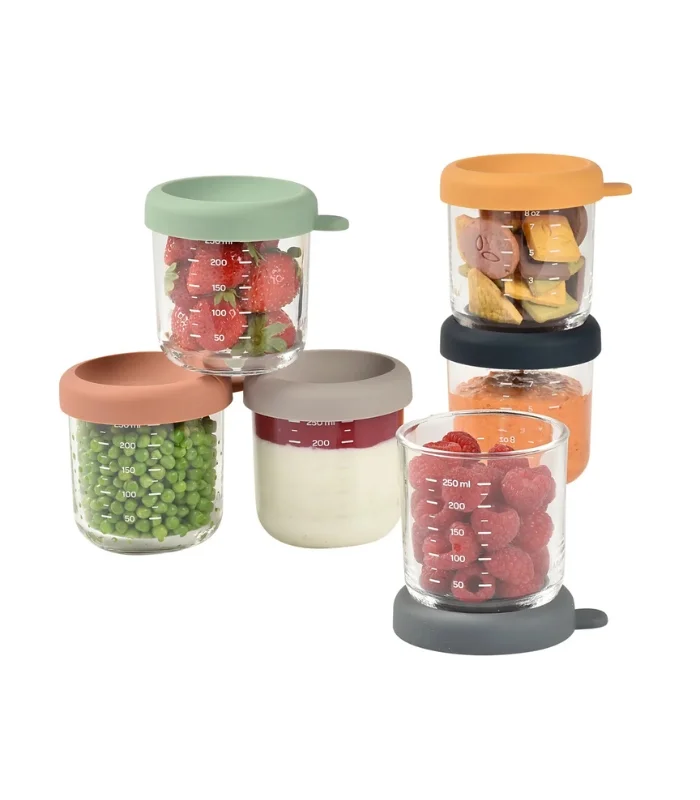 Multi-jar set for meal prepping and storage in playful, sunrise tones.