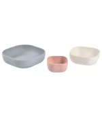 Setof3siliconebowls Havingthreesizestosuittheneedsofeachmealandchildren Thesetwillsuitchildrenwhowanttoseparatefoodatmealtimes Withtheirhighedges androundedshapes theyhelpchildrentoeatindependently Theirwidebaseallowsthemtoremainstableonthetableorhighchairshelf Unbreakabletheyareproofagainstthemostintrepidchildren