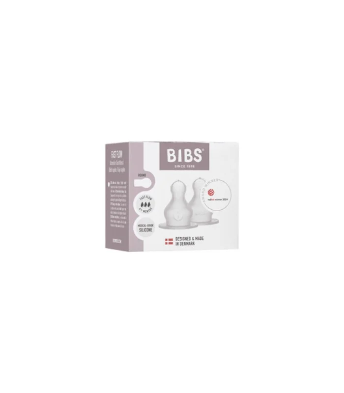 BIBS Baby Bottle Nipple Round Silicone 2 pack Thick Flow