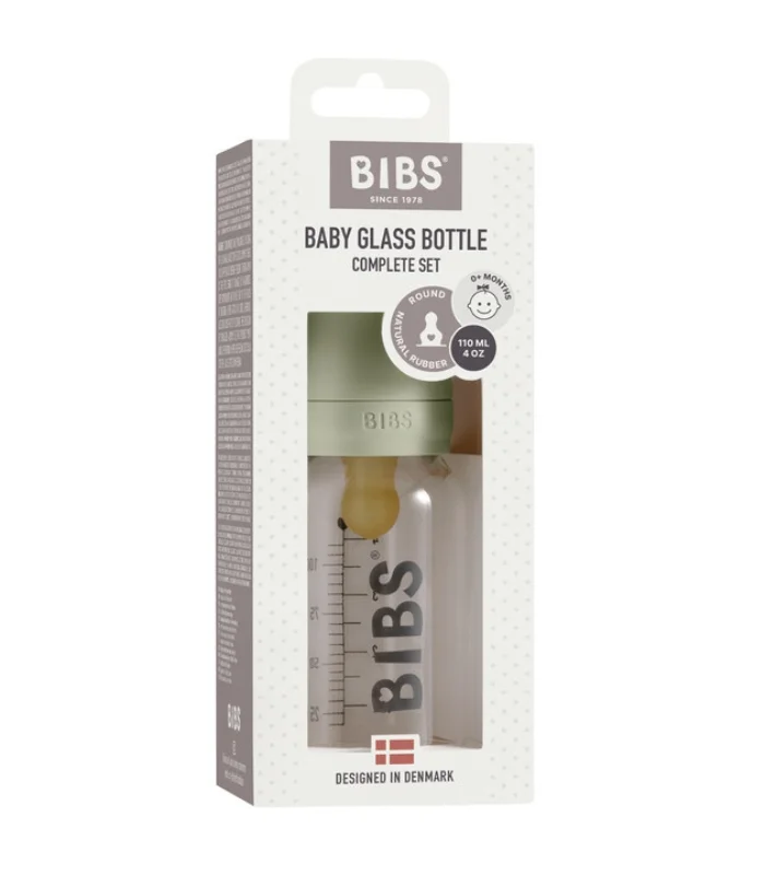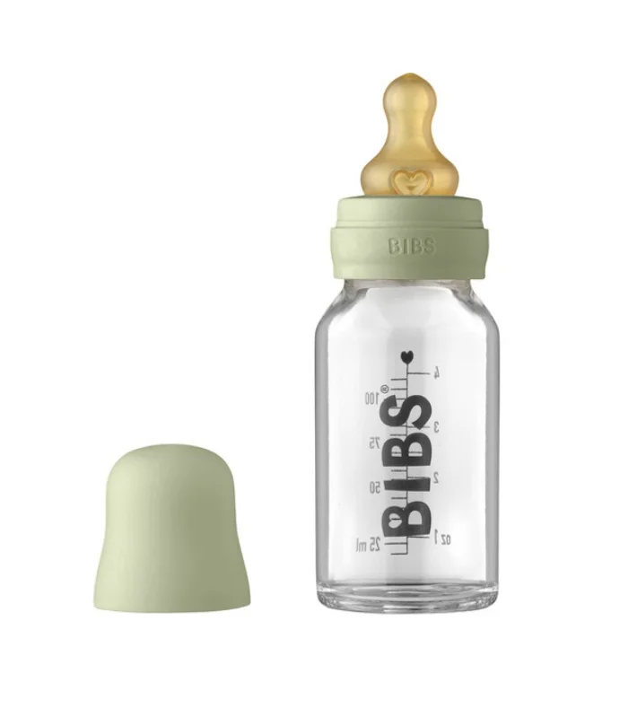 BIBS Baby Glass Bottle Complete Set Latex 110ml Sage