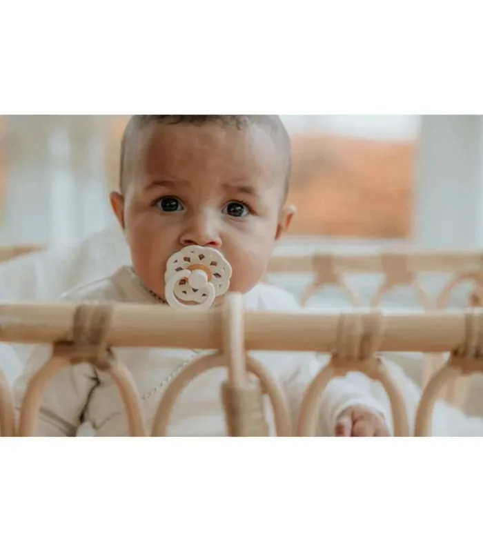 BIBS Boheme takes inspiration in the modern bohemian style with a deep appreciation for mother nature. The bohemian style combines natural elements like wood, rattan, and macramé with artistic, quirky, and organic patterns making this new design fresh, creative, and super cute. BIBS Boheme comes with a round natural rubber latex nipple like our iconic BIBS Colour pacifier.