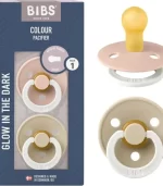 BIBS Colour 2 PACK Latex Size 1 Blush GLOW/Vanilla GLOW