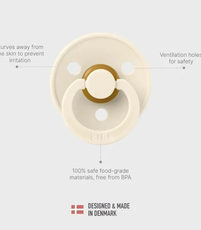 The Colour pacifier has been a bestseller for more than 40 years and is still the most iconic baby accessory and highly loved pacifier. The natural soft latex cherry