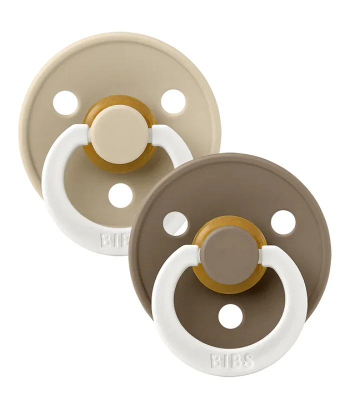 BIBS Colour 2 PACK Latex Size 1 Vanilla GLOW/Dark Oak GLOW
