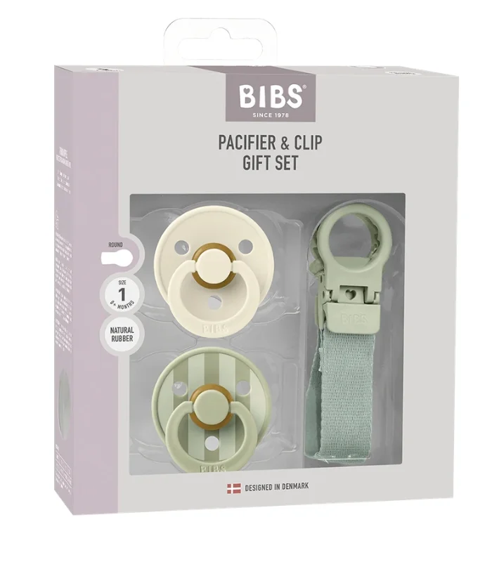 BIBS Colour Pacifier & Loop Clip Gift Set Latex Size 1 Sage