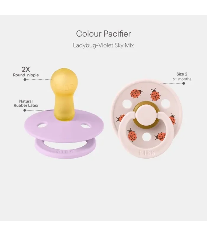 BIBS Pacifier Studio Colour 2 PACK Ladybug Latex Size 2 Violet Sky Mix