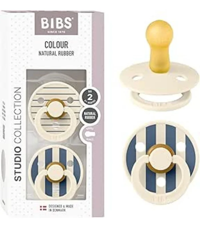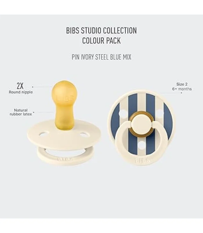 BIBS Pacifier Studio Colour 2 PACK Pin Latex Size 2 Ivory Steel Blue Mix