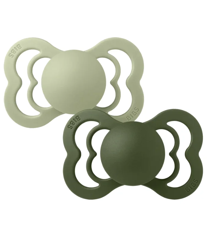 BIBS Pacifier Supreme 2 Pack Silicone Size 2 Sage Hunter Green
