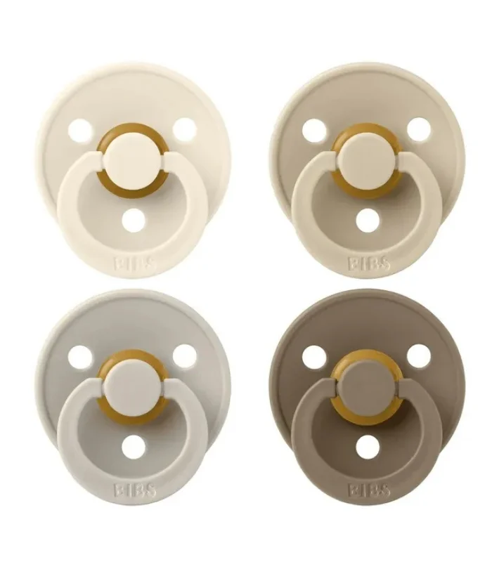 BIBS Round Pacifier Colour 4 Pack Latex Size 1 Ivory Sand Vanilla Dark Oak