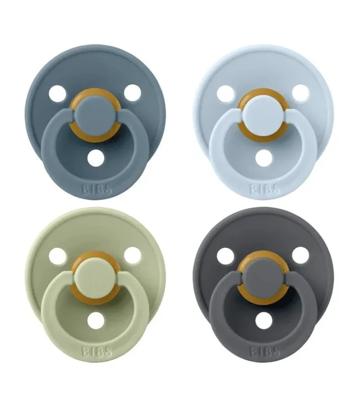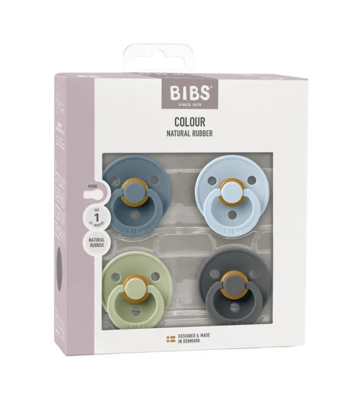 The BIBS Pacifier Colour 4 PACK for babies aged 6-18 months (Size 2) comes with a variety of chic and neutral colors. These pacifiers are designed for comfort and practicality, with soft latex nipples and orthodontic features. This pack gives parents a range of color options to suit their style preferences while ensuring their baby has the comfort they need.