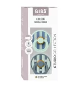 BIBS Round Pacifier Studio Colour 2 Pack Block Latex Size 1 Nordic Mint Petrol Mix