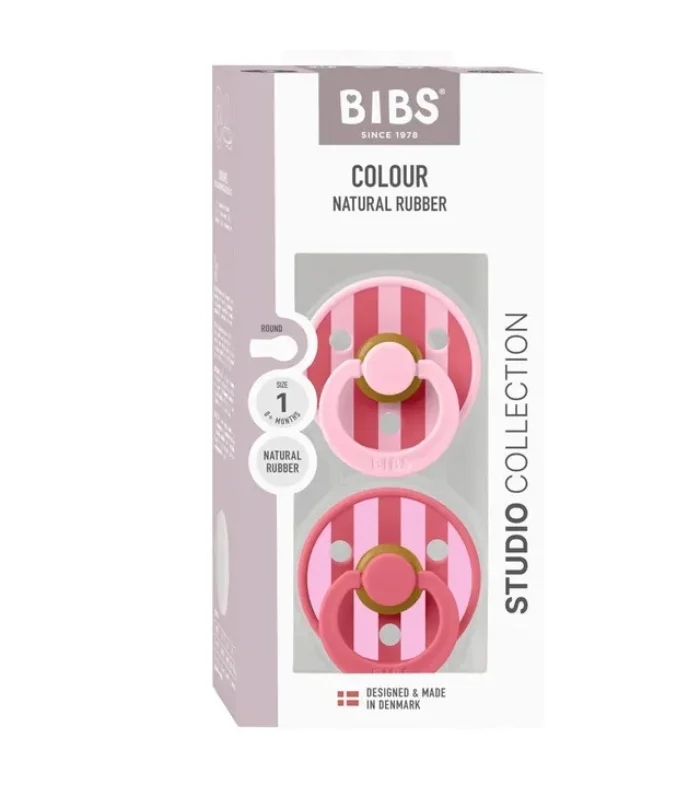 BIBS Round Pacifier Studio Colour 2 Pack Block Latex Size 2 Baby Pink Coral Mix