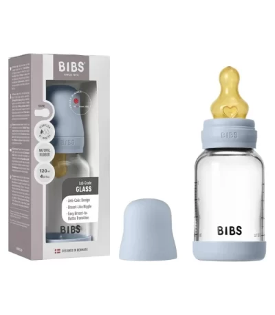 BIBS Glass Baby Bottle Round Latex 1 pack 120 ml Slow Flow Baby Blue