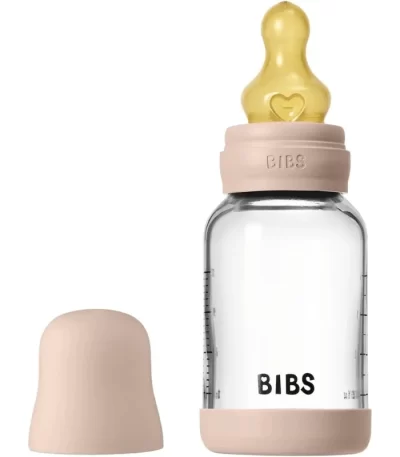 BIBS Glass Baby Bottle Round Latex 1 pack 120 ml Slow Flow Blush