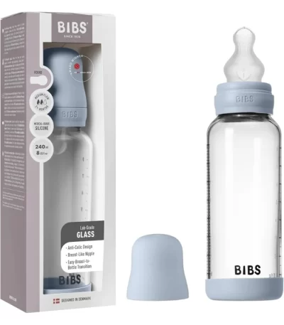 BIBS Glass Baby Bottle Round Latex 1 pack 240 ml Medium Flow Baby Blue