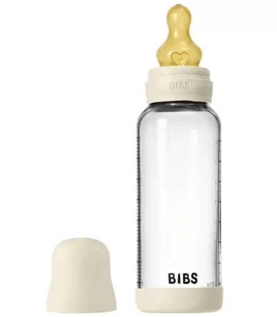 BIBS Glass Baby Bottle Round Latex 1 pack 240 ml Medium Flow Ivory