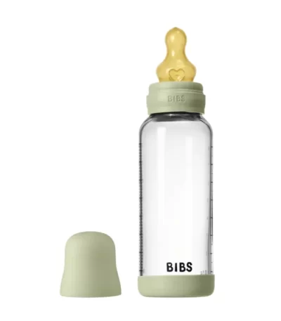 BIBS Glass Baby Bottle Round Latex 1 pack 240 ml Medium Flow Sage