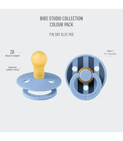 BIBS Pacifier Studio Colour 2 PACK Pin Latex Size 1 Sky Blue Mix