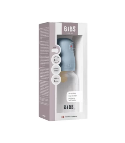 BIBS Baby Bottle Round Nipple Latex 1 Pack 150 Ml Slow Flow Baby Blue